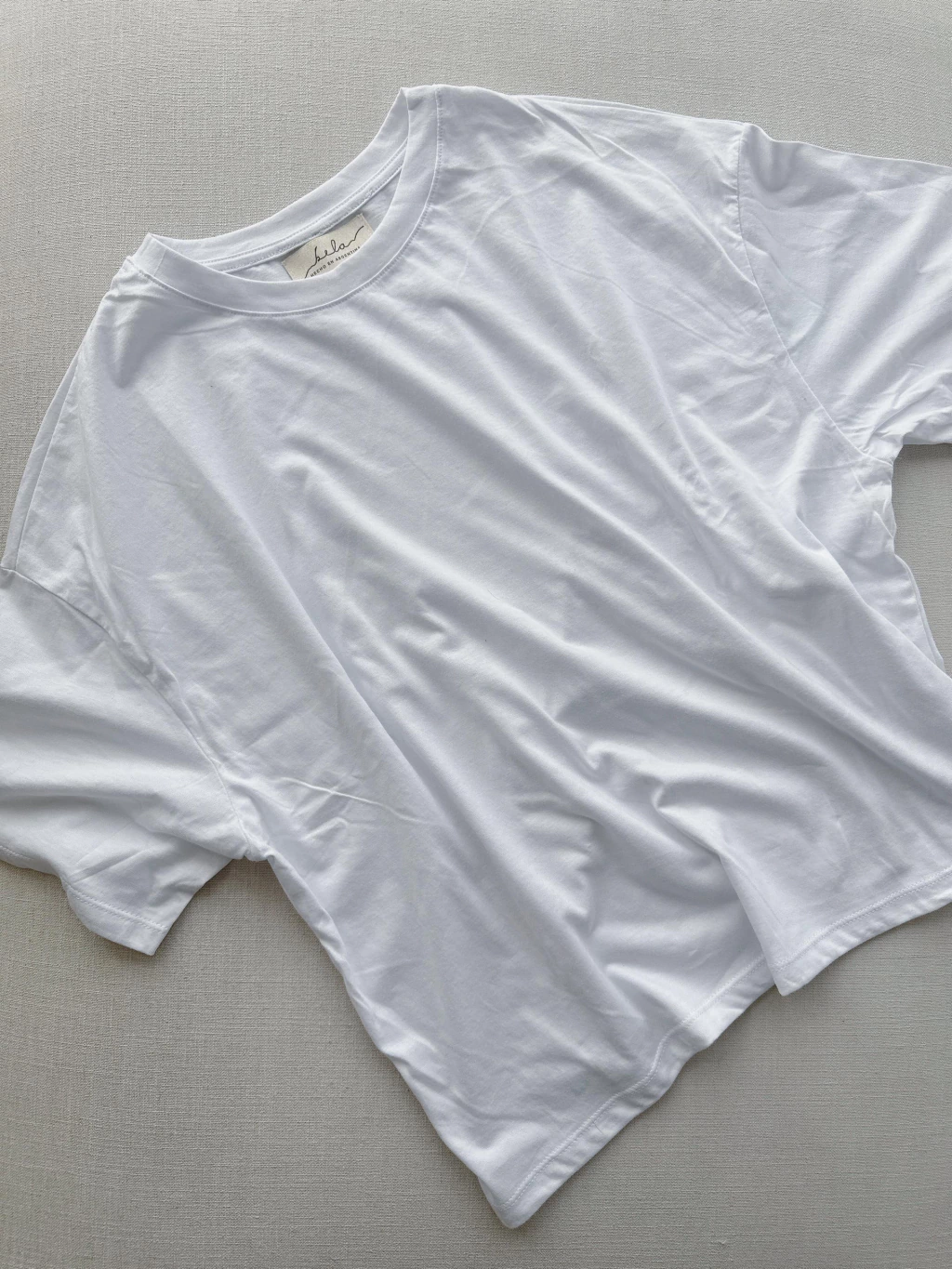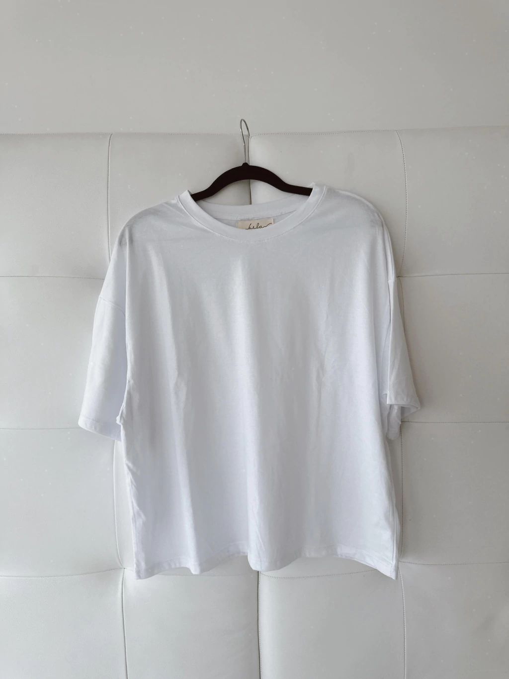 Remera lisa confeccionada en algodón 100% con escote redondo y mangas cortas.