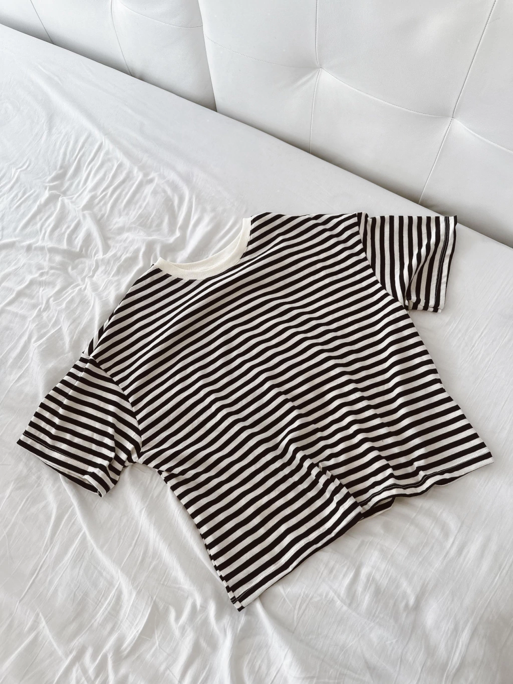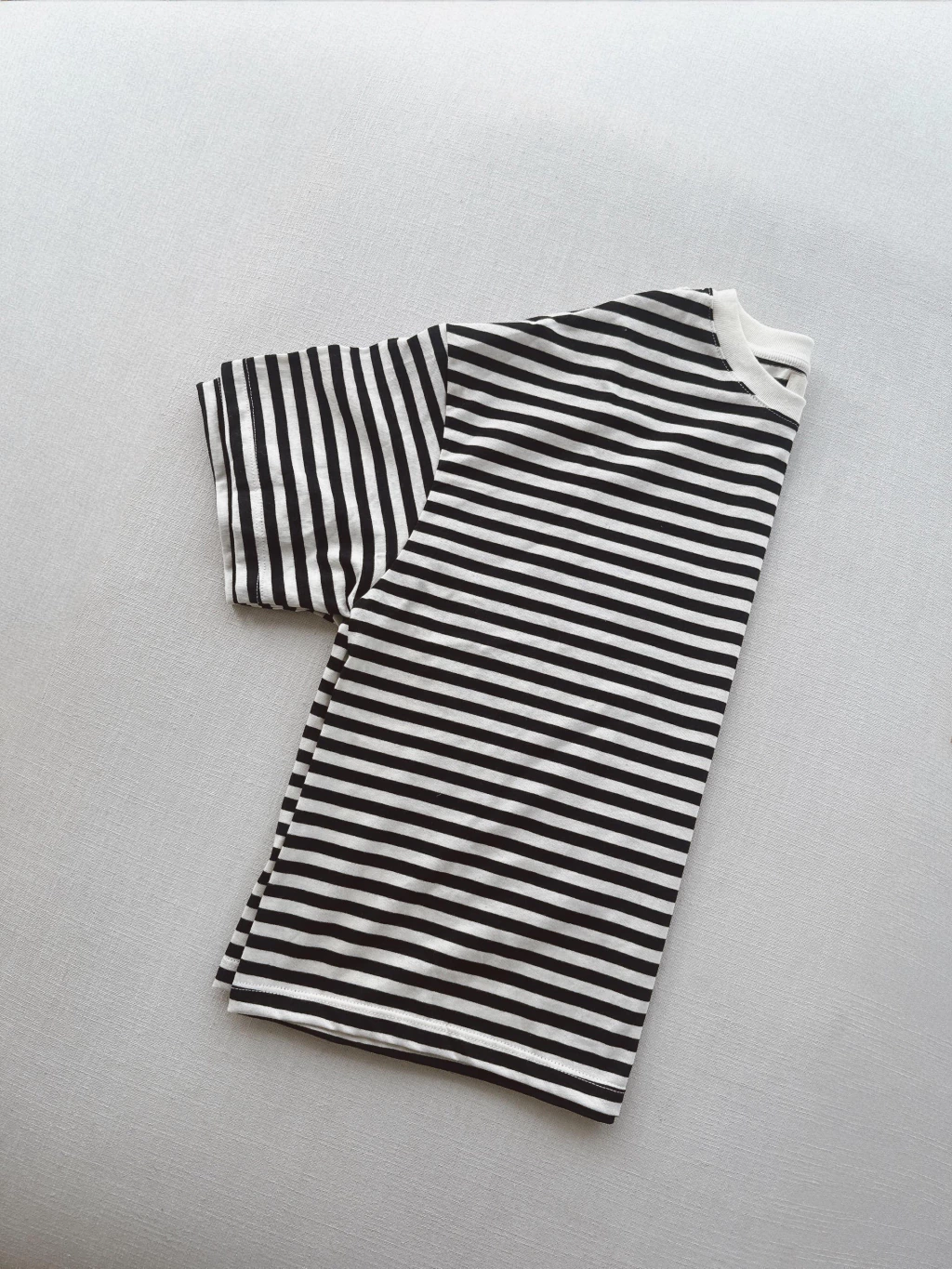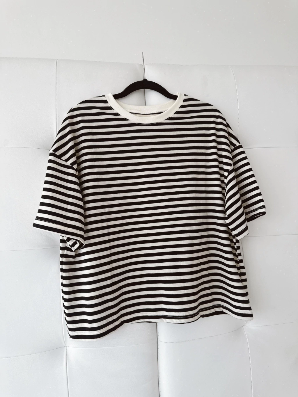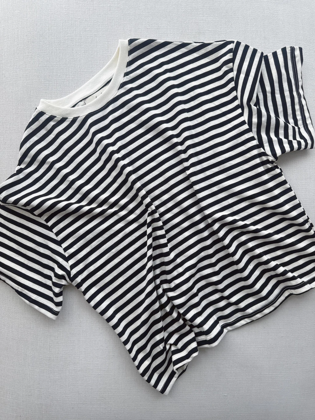 Remera a rayas confeccionada en algodón 100% con escote redondo y mangas cortas.