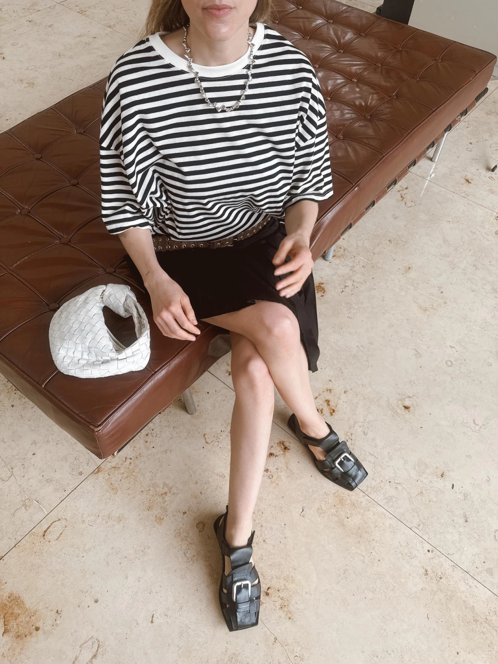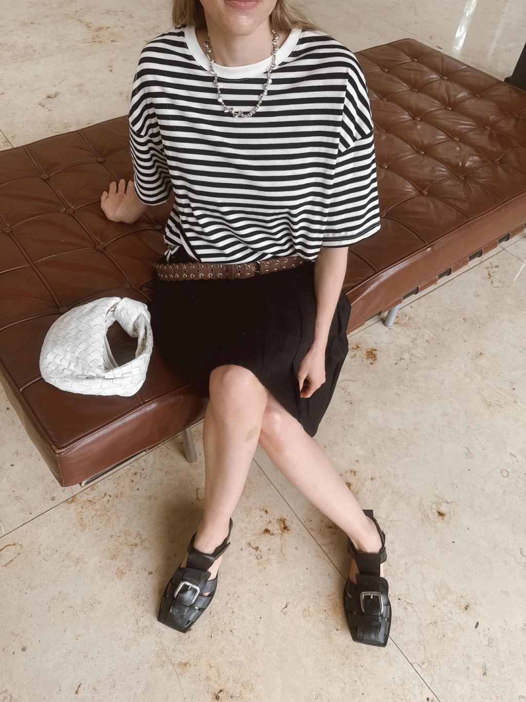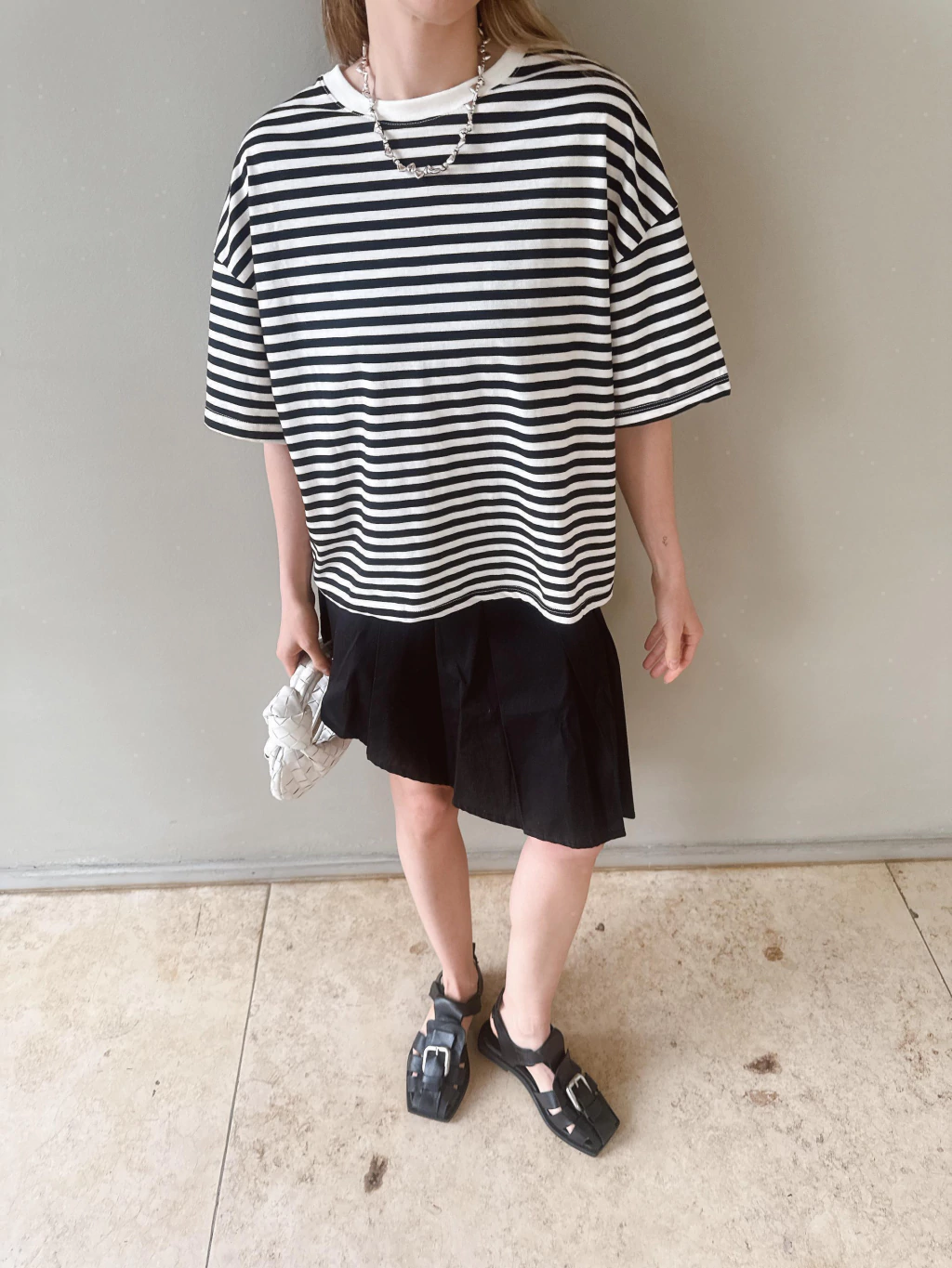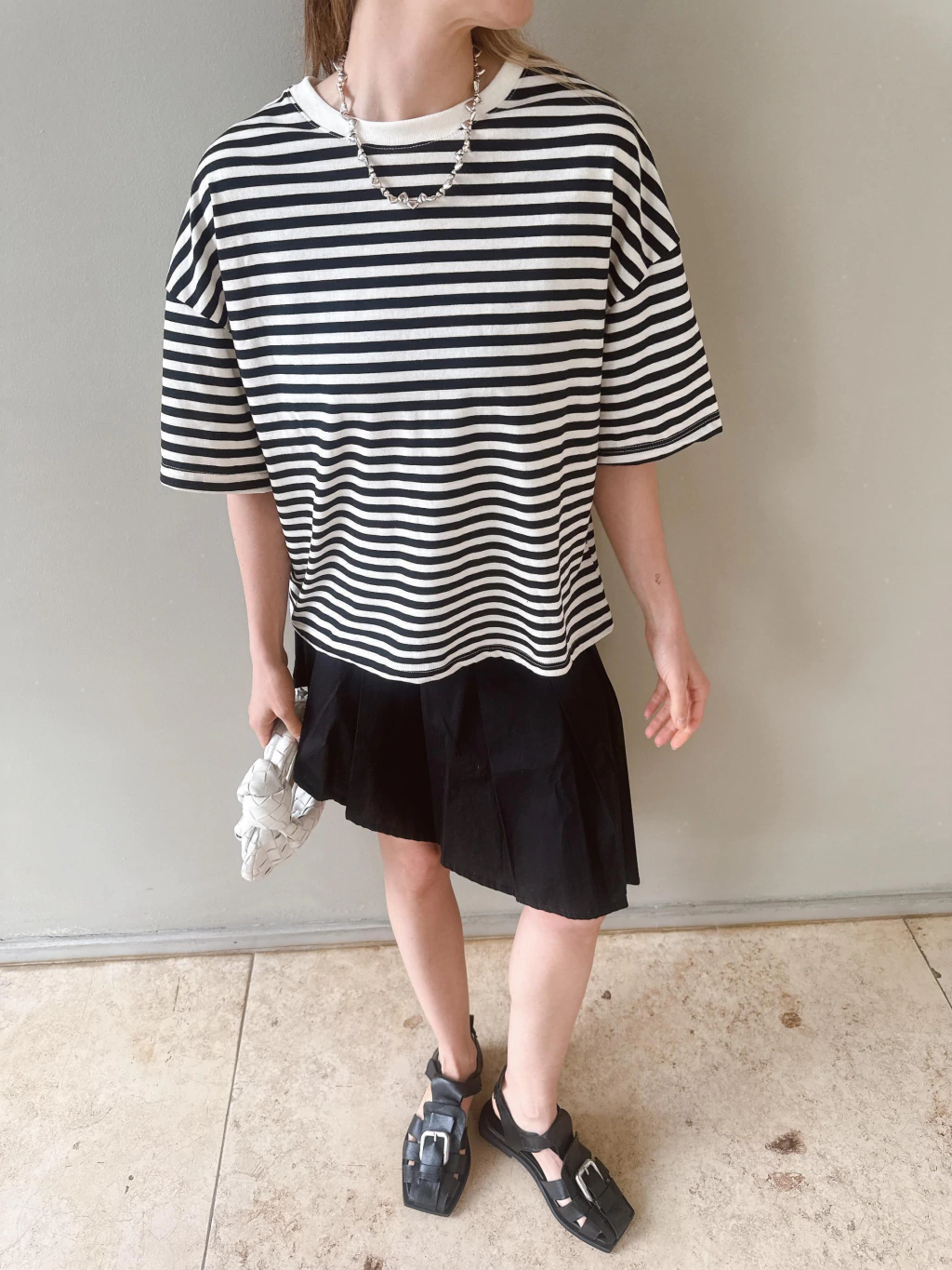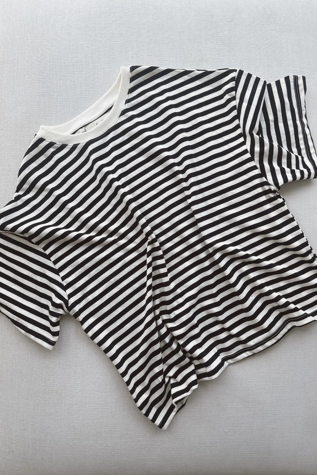 Remera a rayas confeccionada en algodón 100% con escote redondo y mangas cortas.
