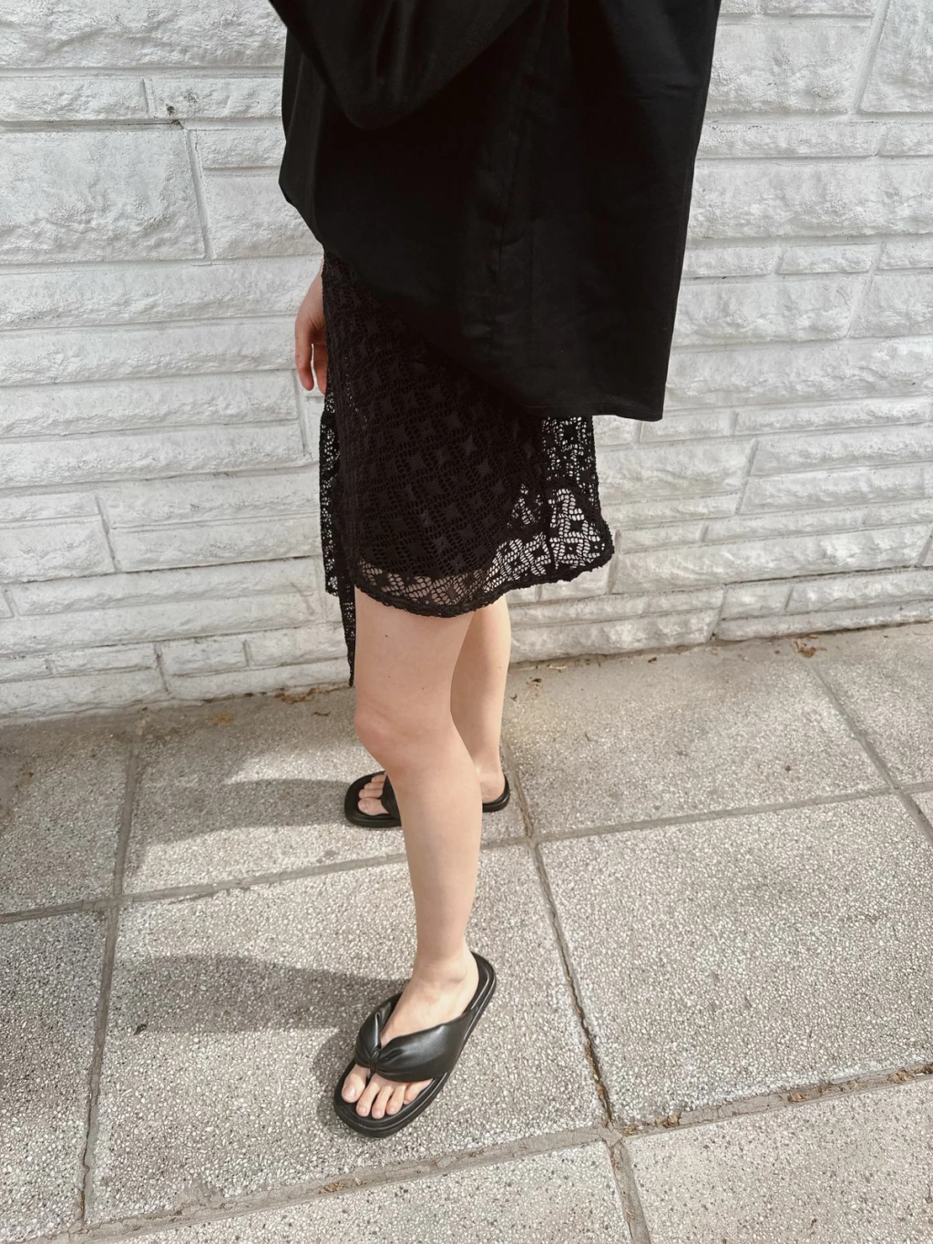 Falda de largo irregular confeccionada en textil de punto estilo crochet, posee un cierre invisible lateral para cerrar.