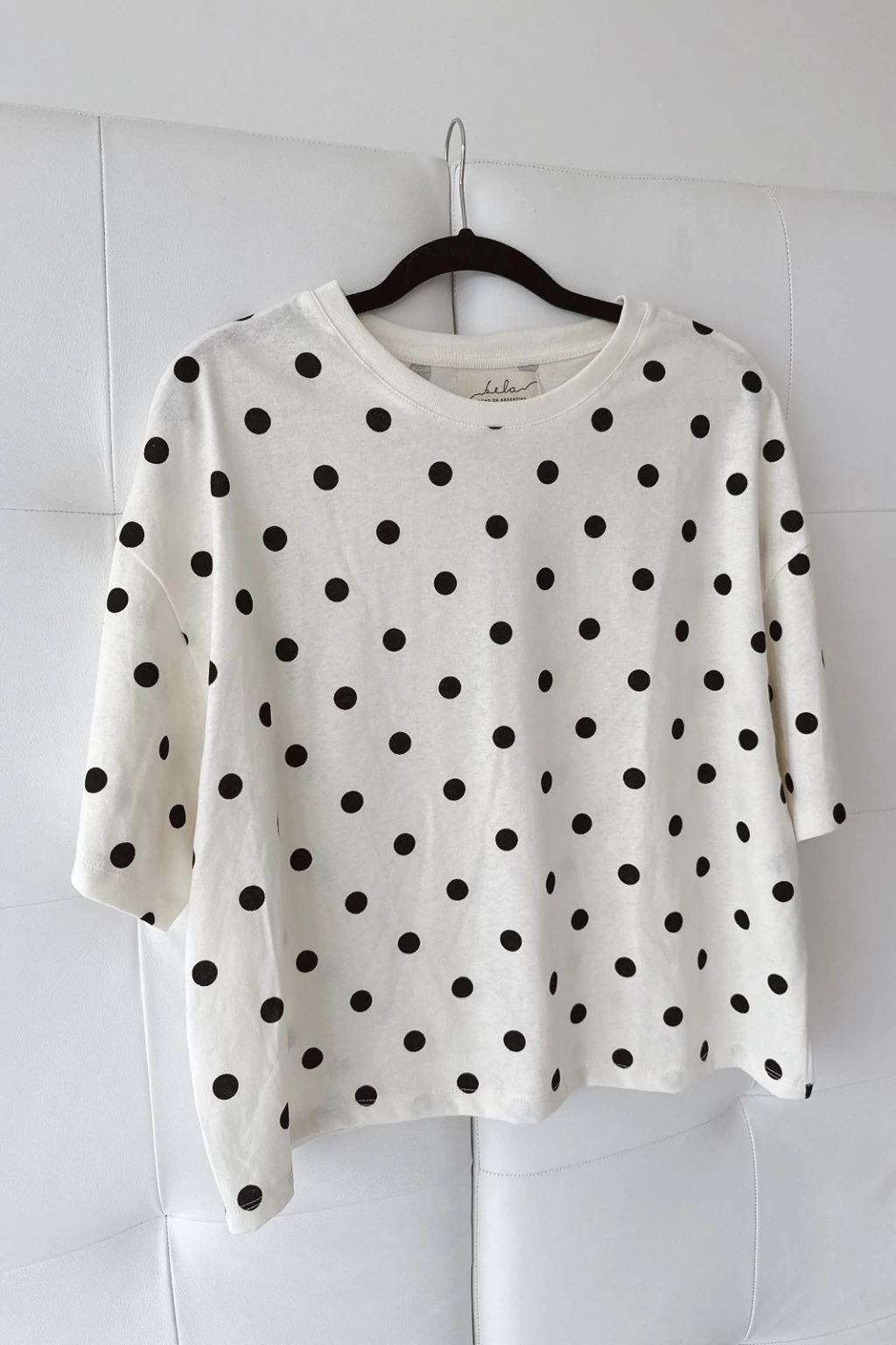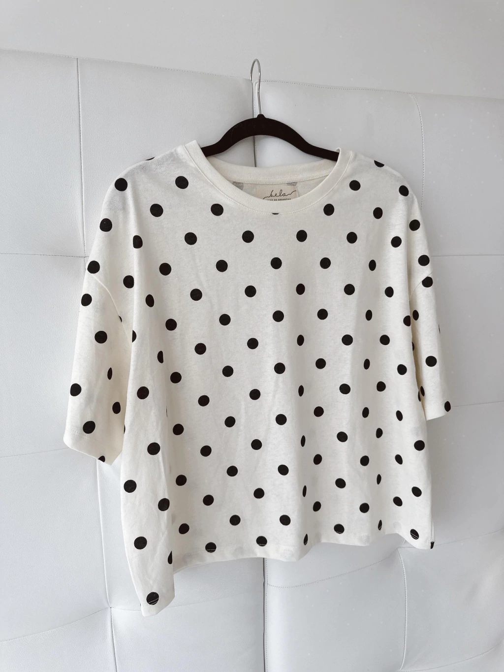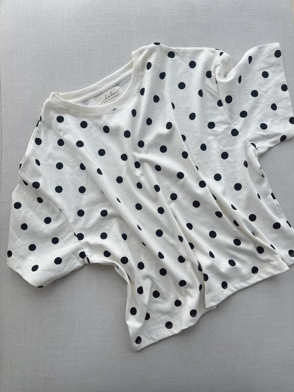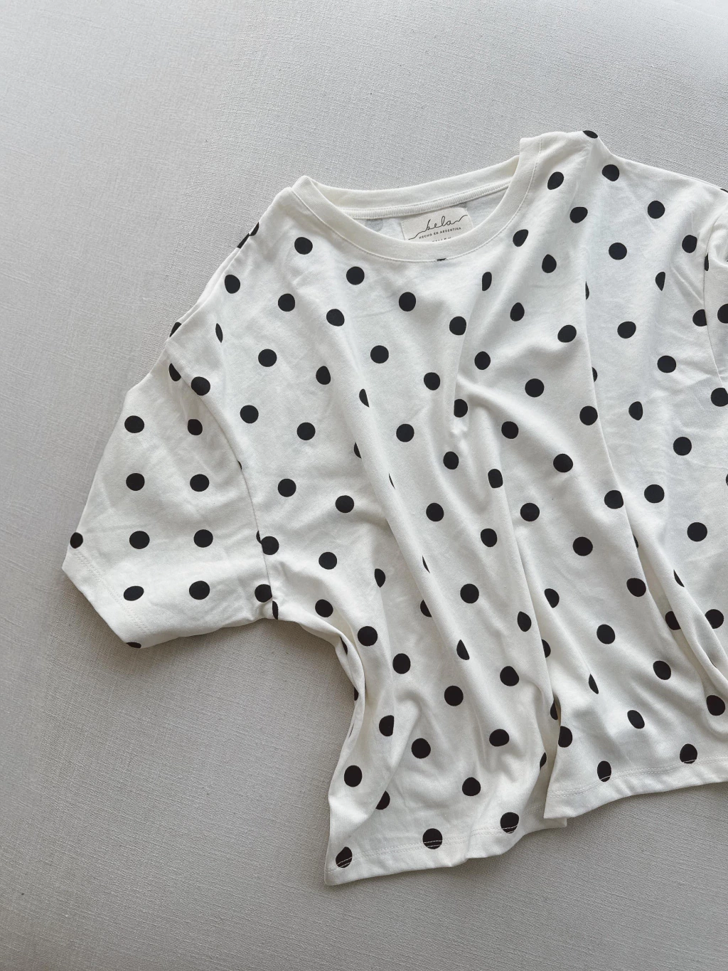Remera estampada con lunares confeccionada en algodón 100%, con escote redondo y mangas cortas.