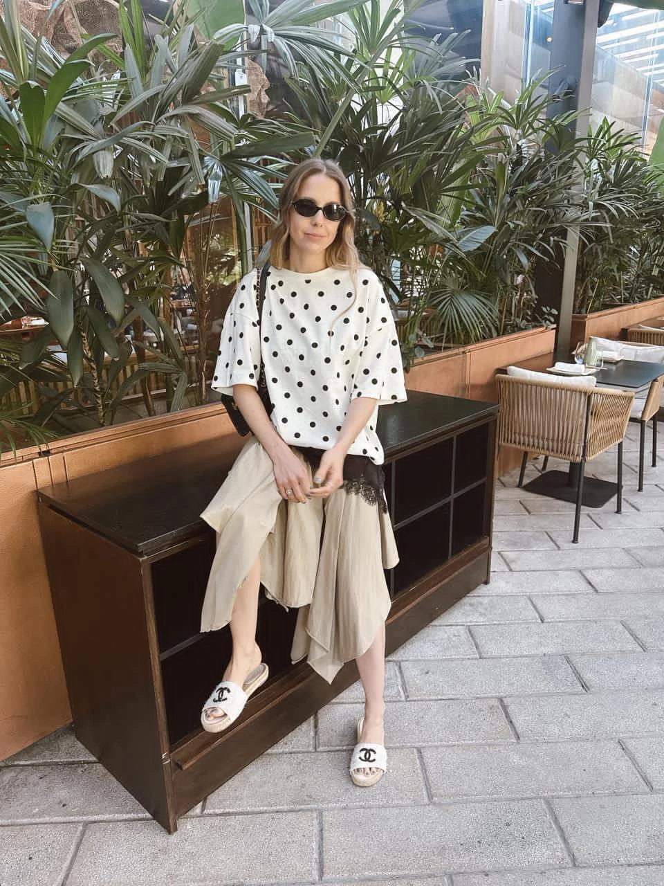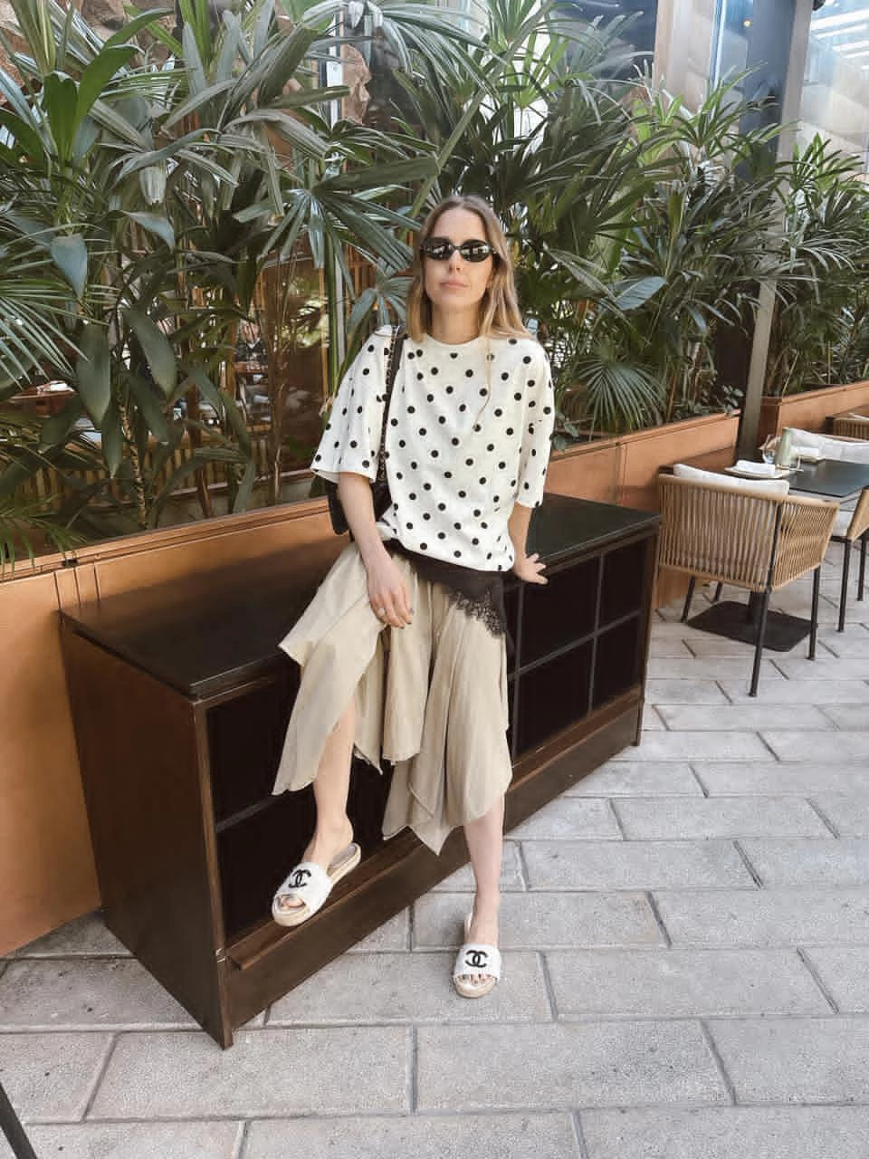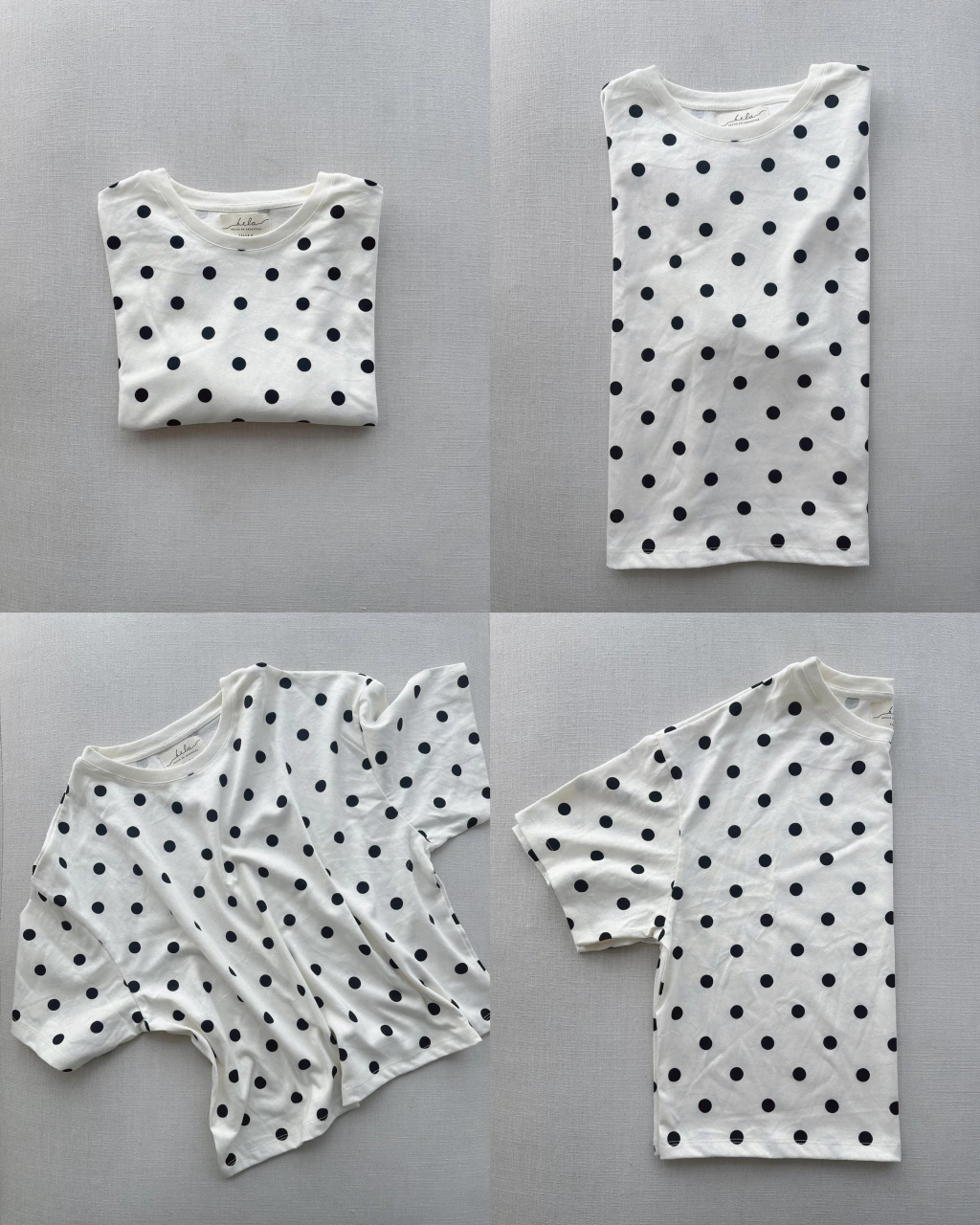 Remera estampada con lunares confeccionada en algodón 100%, con escote redondo y mangas cortas.