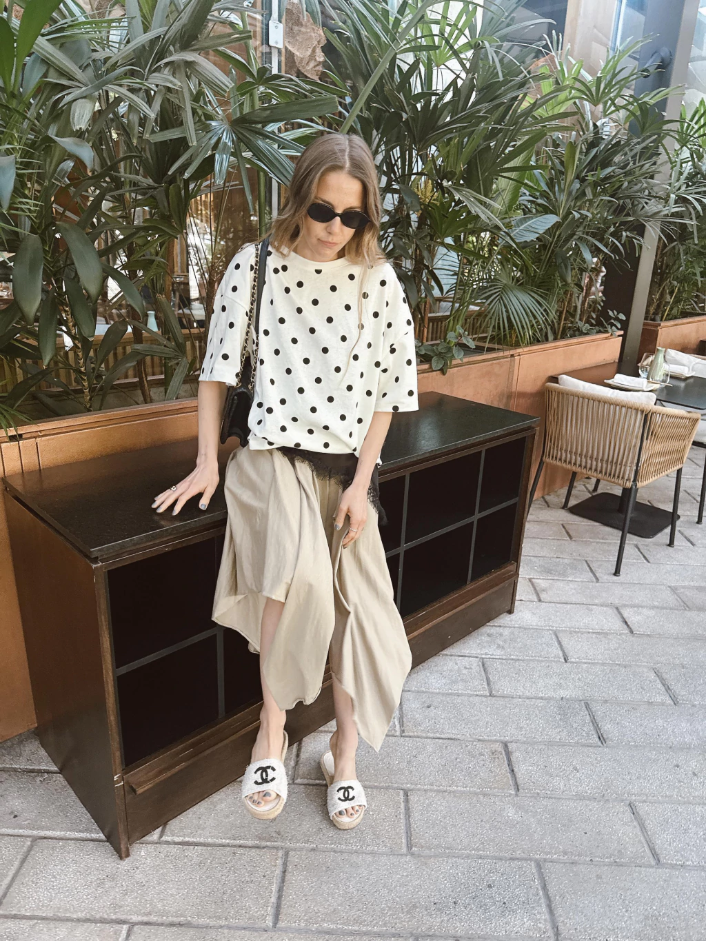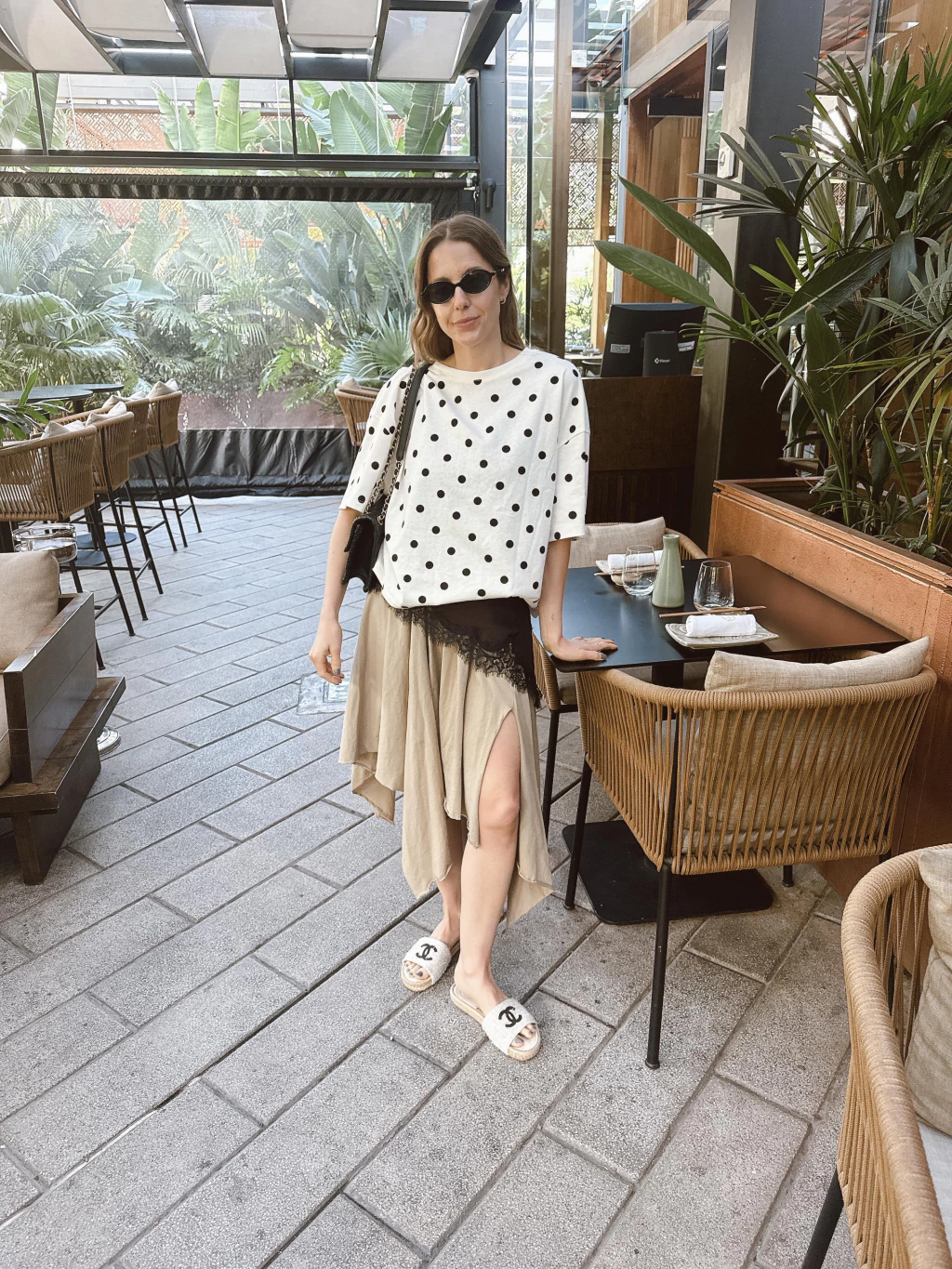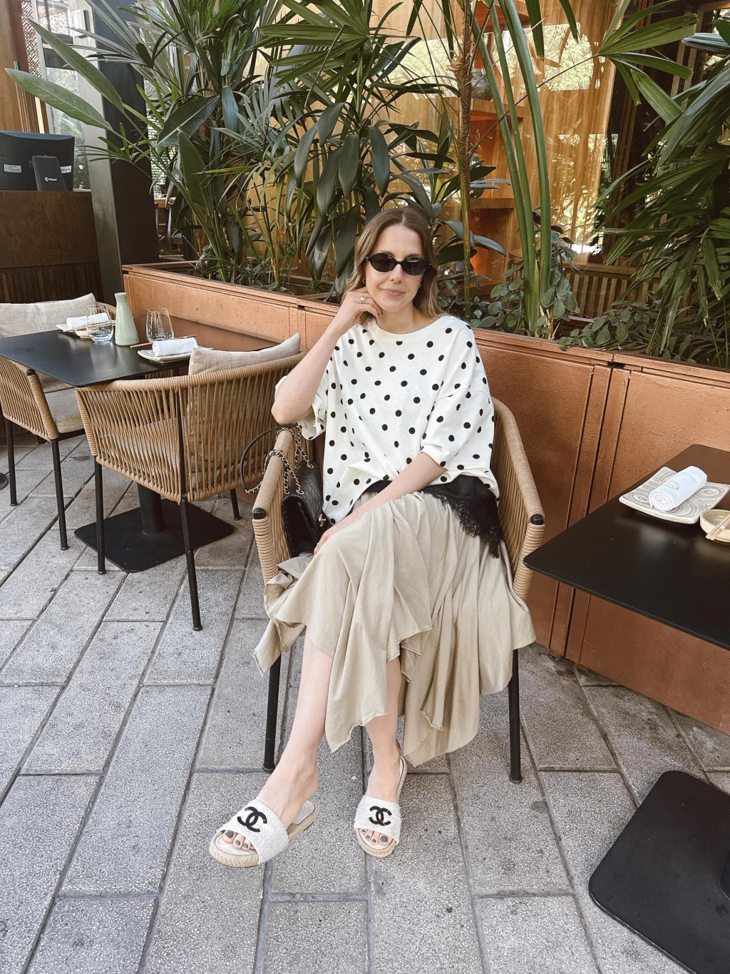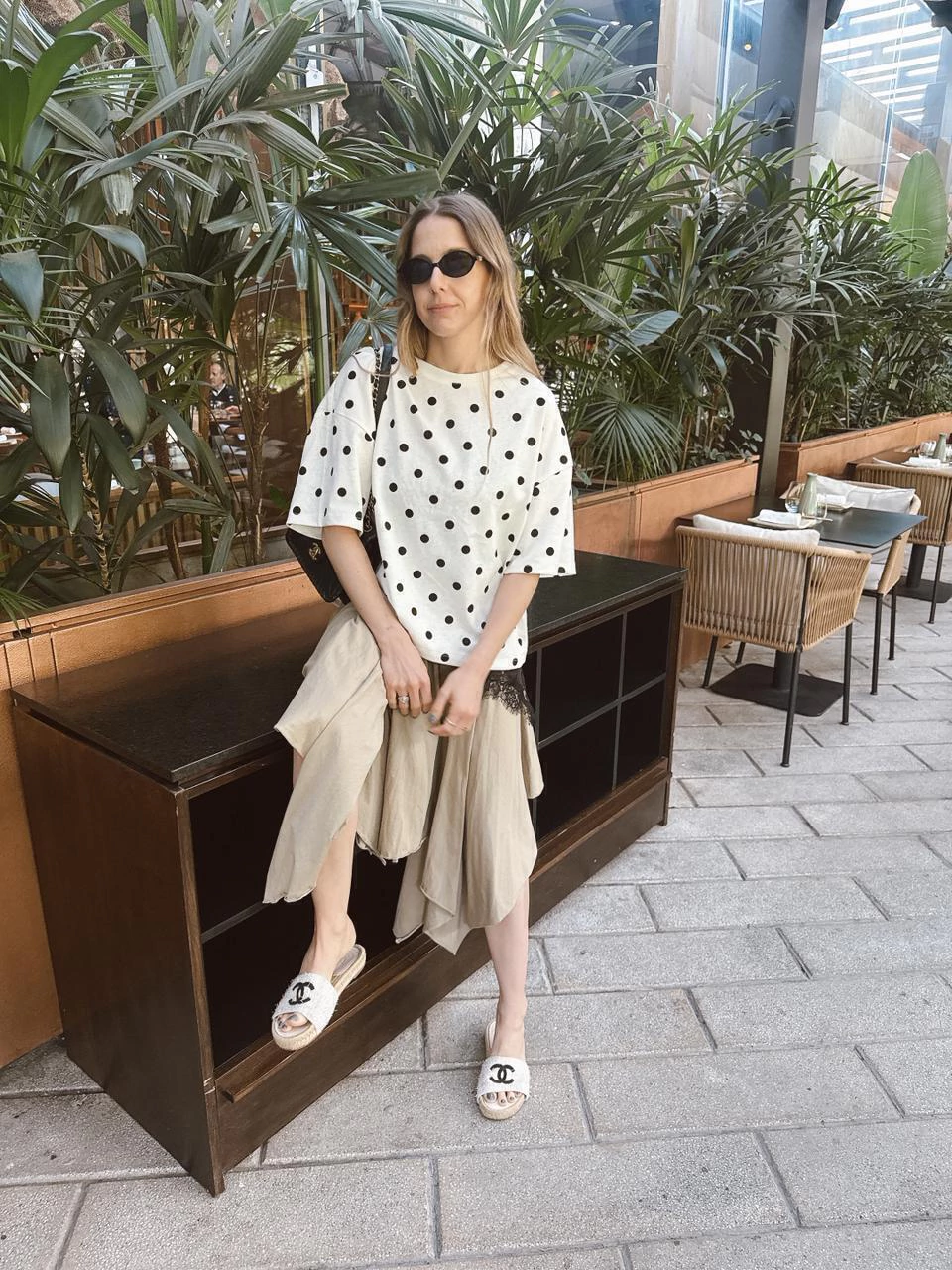 Remera estampada con lunares confeccionada en algodón 100%, con escote redondo y mangas cortas.